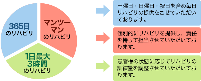 - 在宅復帰・職業復帰を視野に入れた総合的な訓練を実施します。
